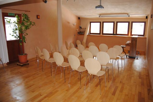 Wir verfügen im Erdgeschoss über einen großen Seminarraum (ausgestattet mit Leinwand/Beamer/Internetanschluss/TV-Radio/Tagungsbestuhlung und Relaxmatten) einem separaten Speiseraum mit angeschlossener Bibliothek/Fernsehzimmer verbunden mit einem Kachelofen.